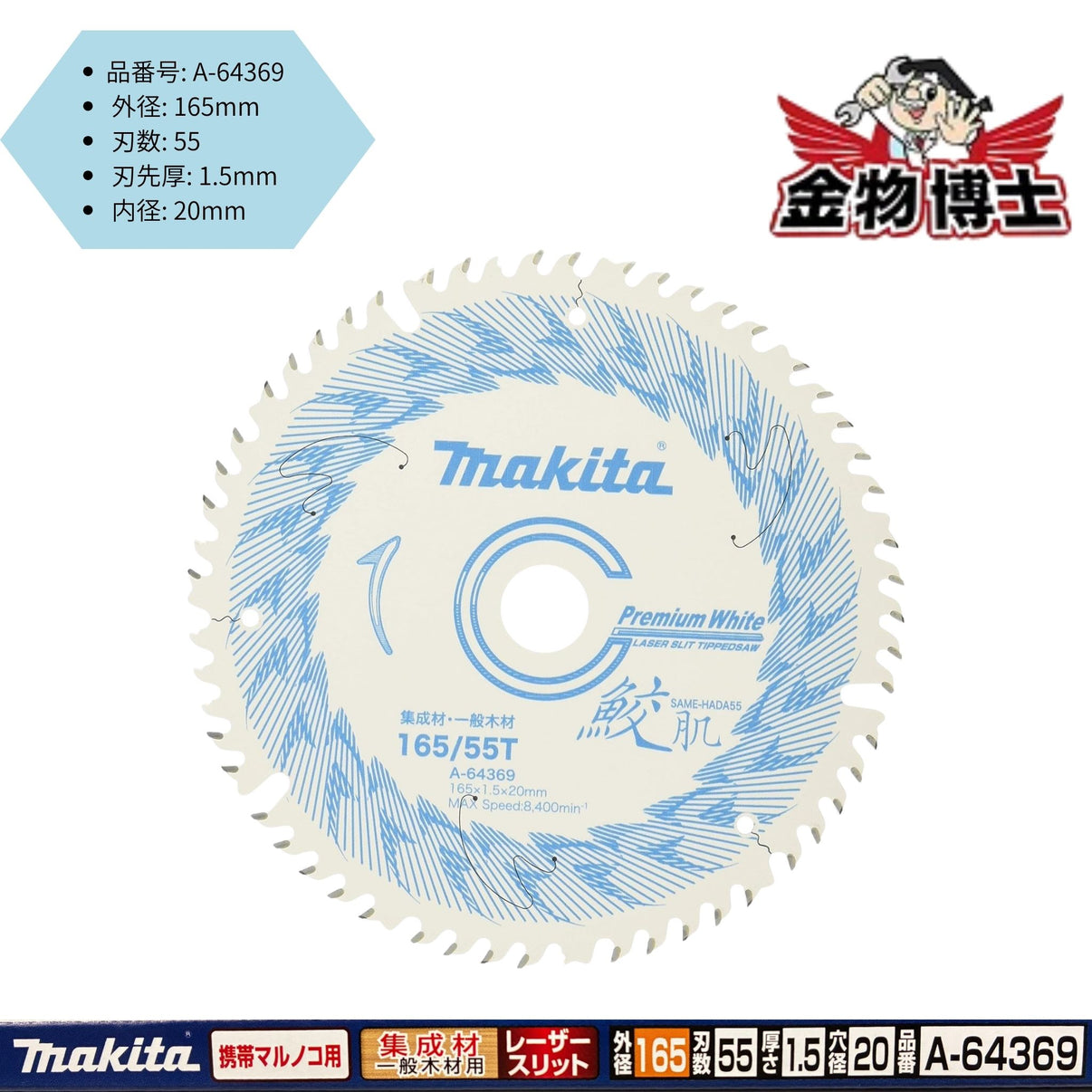 マキタ(Makita) 鮫肌プレミアムホワイトチップソー 165mm×55P A-64369 高耐久・静音・木工用