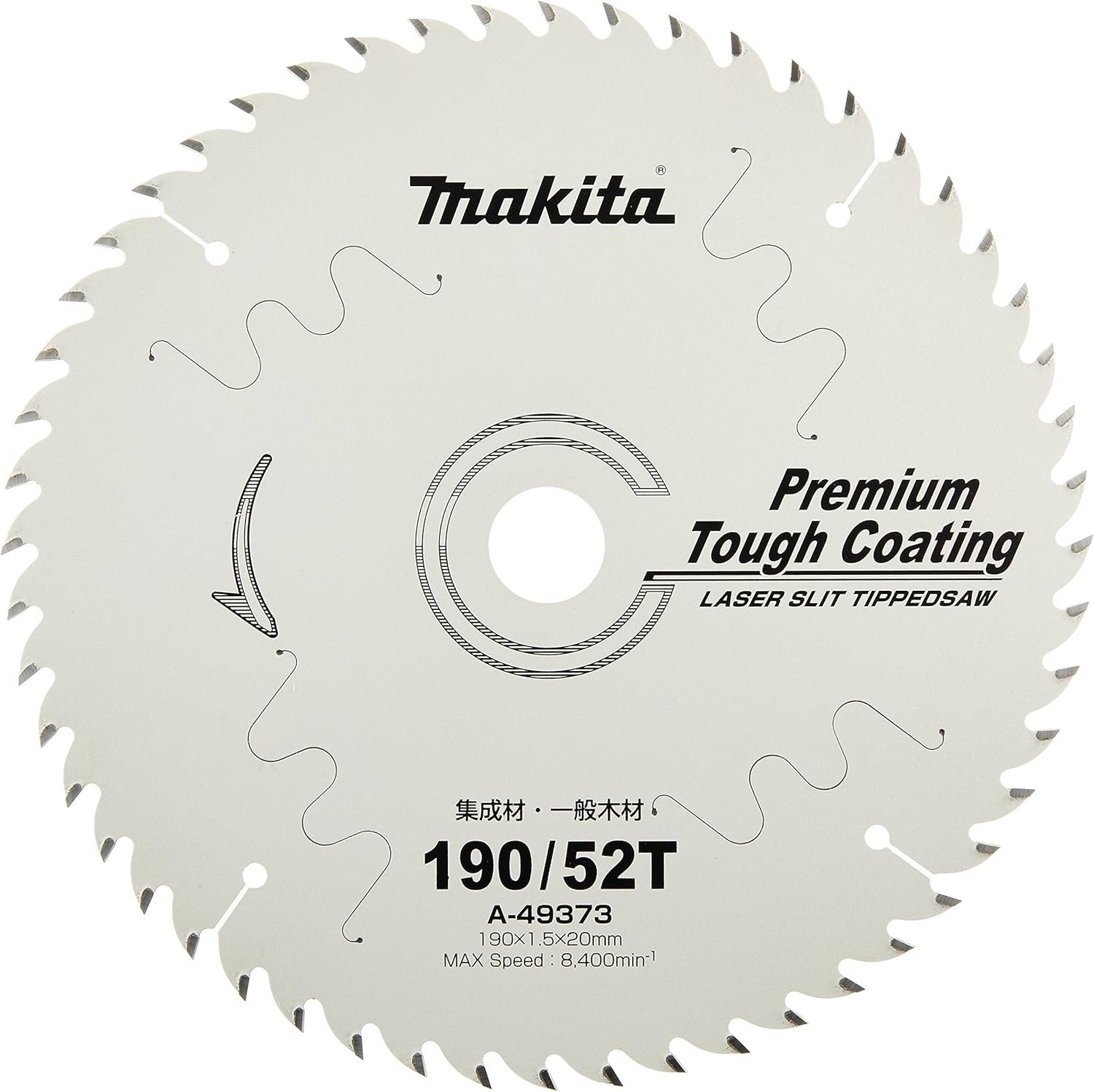■ブランド名:Makita(マキタ)■型式:A-49373■付属品:本体のみ■外径:190mm■刃数:52枚■色:シルバー■鋸身厚:1.0mm■刃先厚:1.5mm■内径:20mm■スタイル:チップソー■特徴:プレミアムタフコーティングで耐久性アップ。精密切断可能で木工作業に最適。
