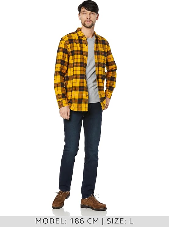 Amazon Essentials メンズ フランネルシャツ 長袖 スリムフィット 100%コットン カジュアル 秋冬用