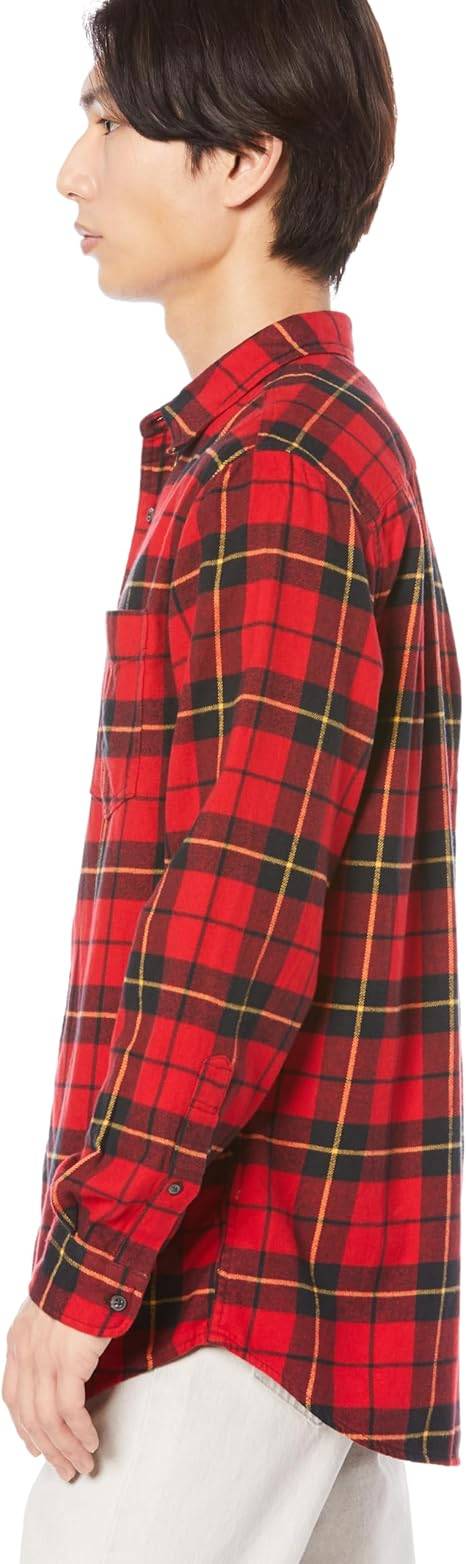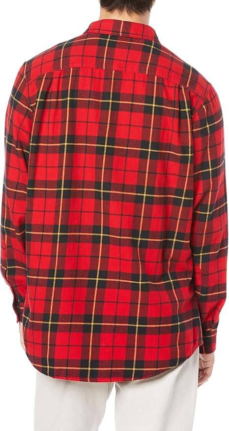 Amazon Essentials メンズ フランネルシャツ Mサイズ スリムフィット 長袖 ブラック・レッド・イエロー ラージチェック柄 コットン100%